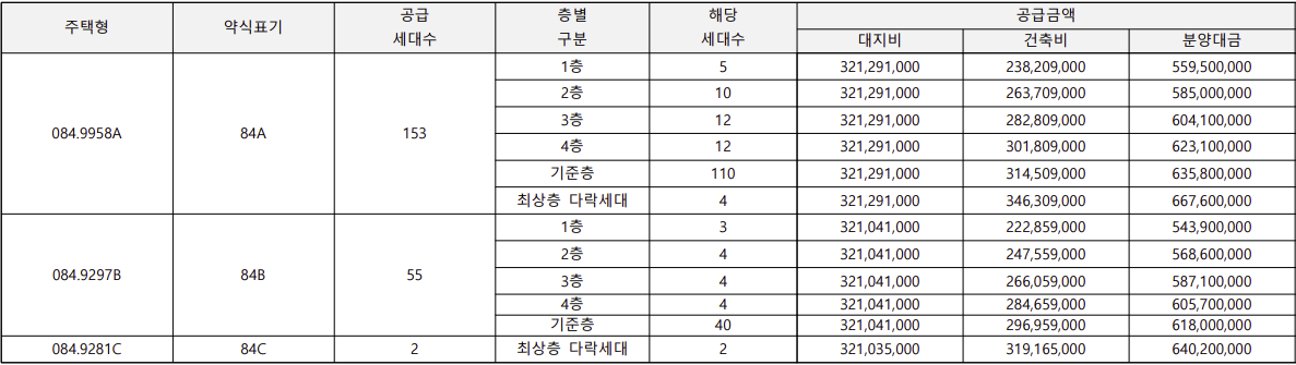 전용면적 85㎡ 초과 : 공급물량 없음.