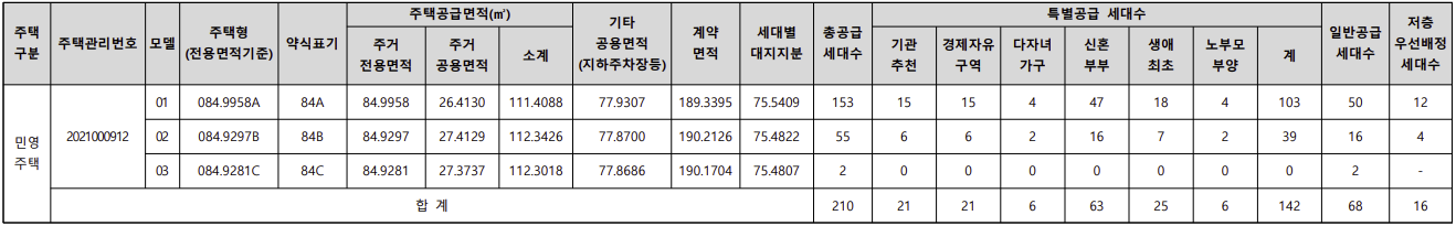 - 공급규모 : 아파트 지하 2층, 지상 18층 4개동 총 210세대 및 부대복리시설