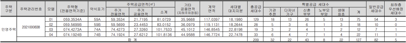 전용면적 85㎡ 초과 : 공급물량 없음.
