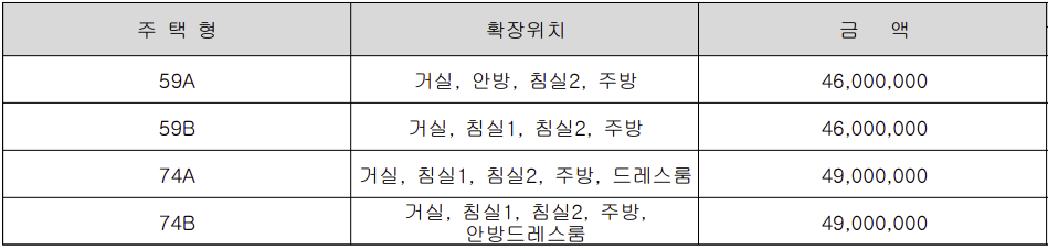 3. 브라운스톤 더프라임 분양가 / 확장비 / 평면도