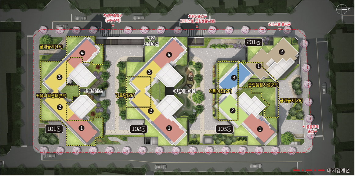 - 공급규모 : 아파트 지하 5층, 지상 최고 48층 3개동 총 481세대