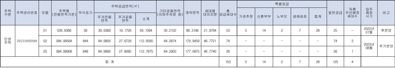 [특별공급 28세대 + 일반공급 125세대]