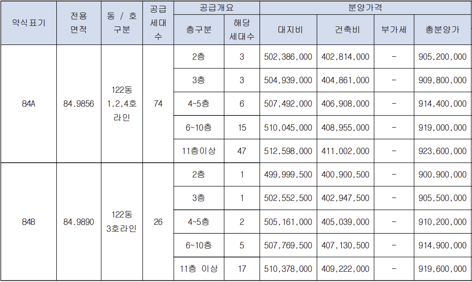 - 84A : 9억 520만 ~ 9억 2360만