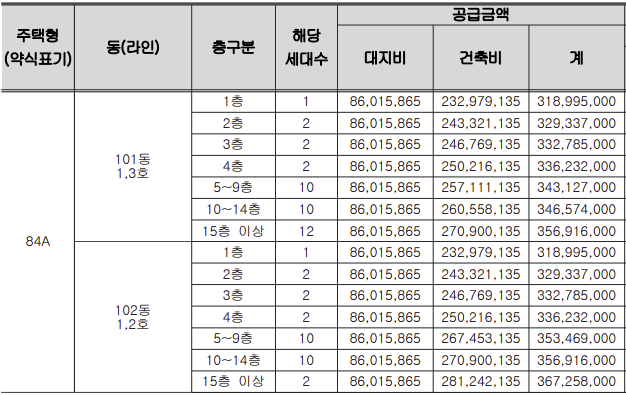 출처 : 입주자 모집공고문