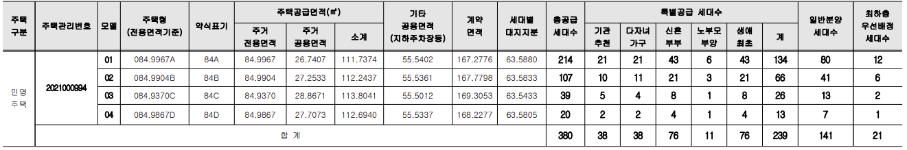 [특별공급 239세대 + 일반공급 141세대]