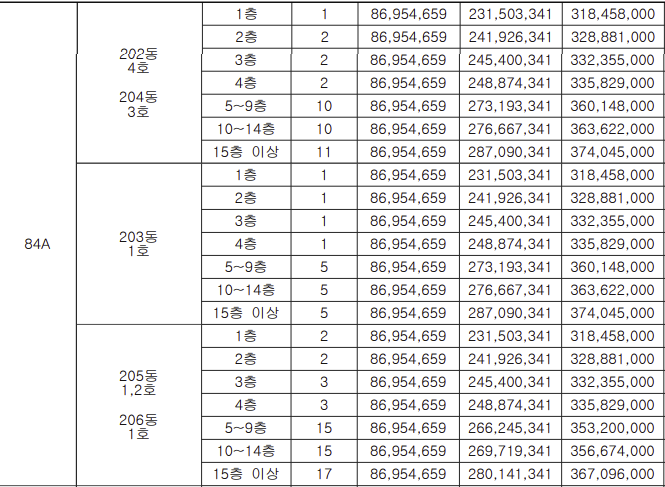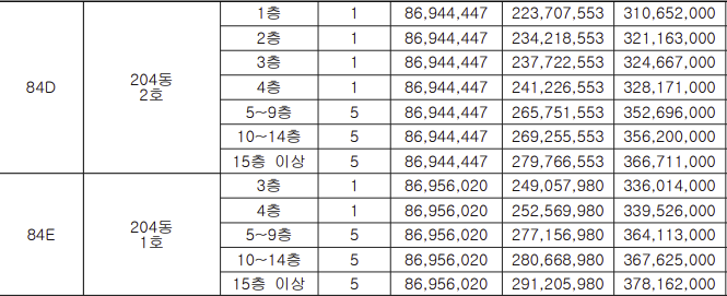 - 84E : 3억 3601만 ~ 3억 7816만