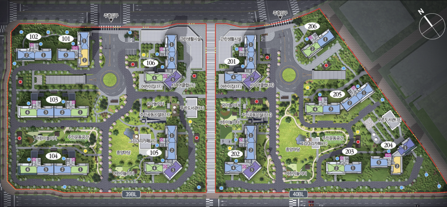 40BL : 아파트 지하 1층, 지상 15~20층 6개동 총 352세대