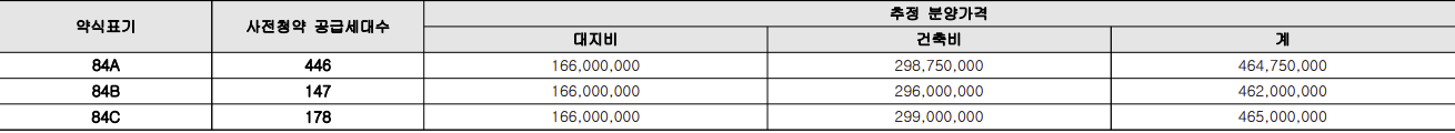 - 추정분양가격에는 발코니 확장비가 포함되어 있지 않으며, 본청약시 발코니 확장비 등 기타 옵션 가격 제시 예정.