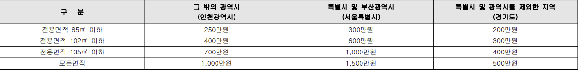 전용면적 85㎡ 초과 : 공급물량 없음.