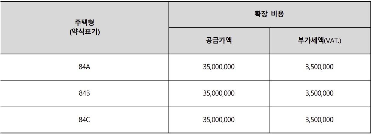 3. 이천 센트레빌 레이크뷰 분양가 / 확장비 / 평면도