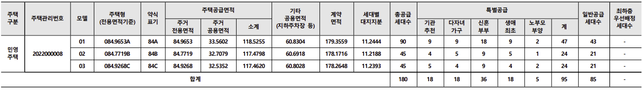 [특별공급 95세대 + 일반공급 85세대]