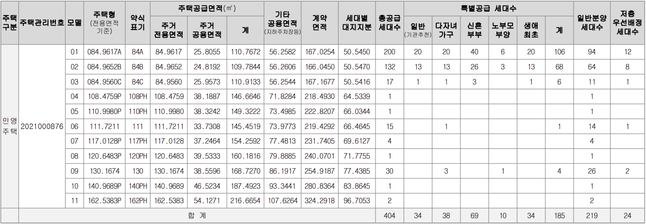 - 공급규모 : 아파트 지하 2층, 지상 16~18층 6개동 총 404세대 중 일반분양 404세대