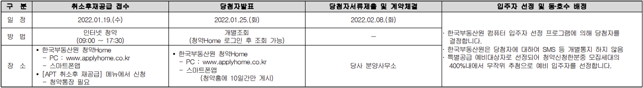 - 재당첨제한 : 당첨자로 선정된 경우에는 향후 특별공급에 신청할 수 없음.
