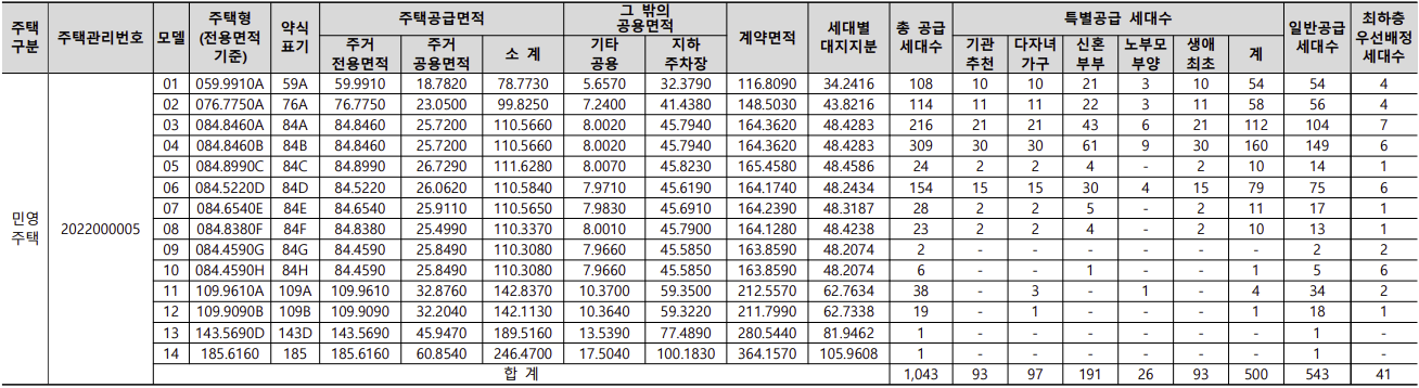 [특별공급 500세대 + 일반공급 543세대]