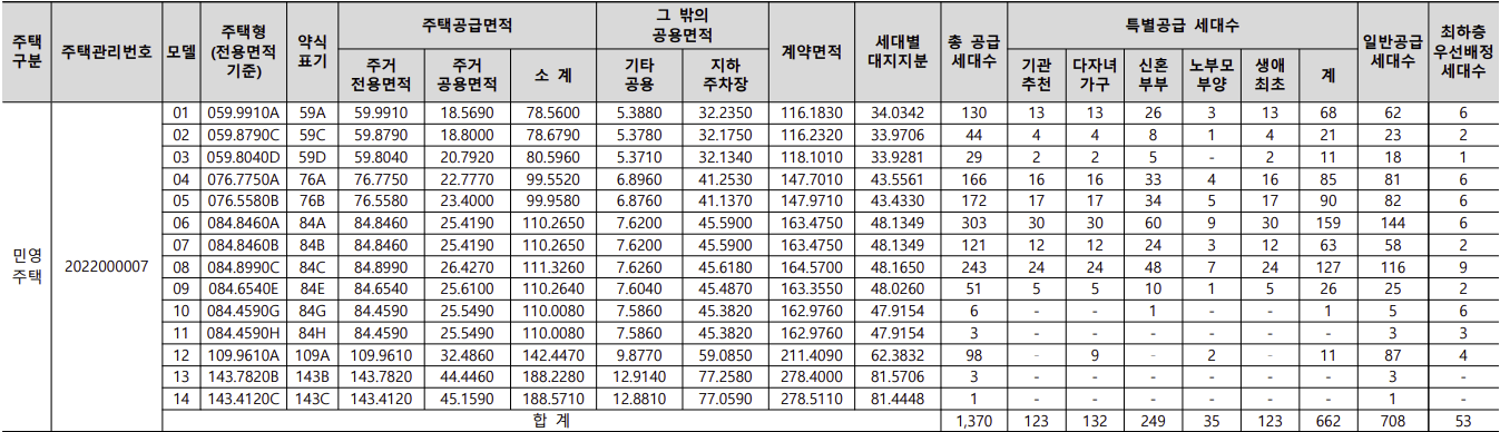 [특별공급 662세대 + 일반공급 708]