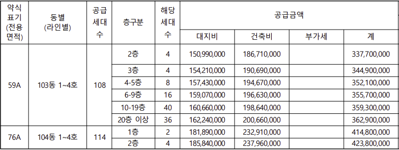 출처 : 입주자 모집공고문