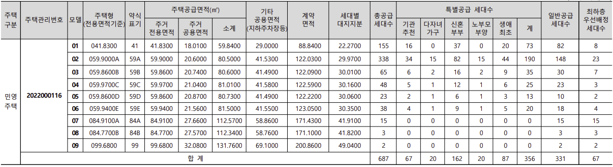- 공급 규모 : 아파트 지하2층, 지상 17층~37층 21개동 총 2,736세대 중 일반공급 687세대 및 부대복리시설