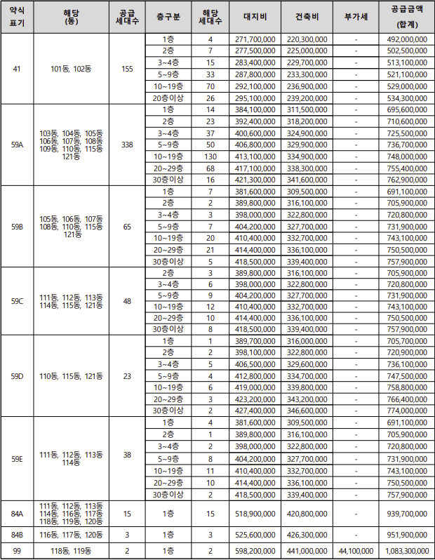 2) 59A : 6억 9560만 ~ 7억 6290만