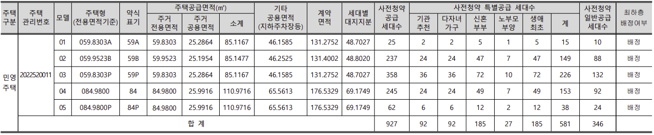 [특별공급 581세대 + 일반공급 346세대]