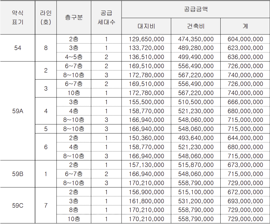 4) 59C : 6억 7200만 ~ 7억 2900만