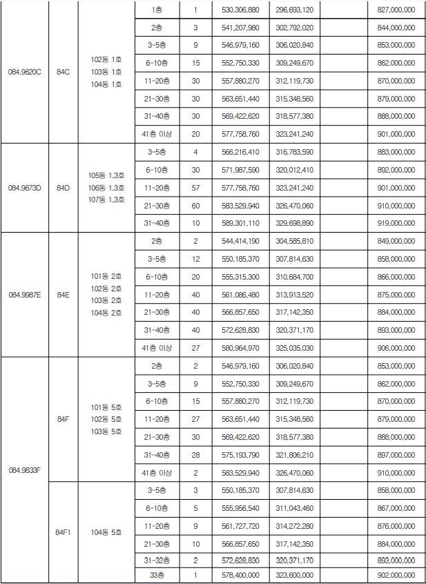 - 84A1 : 8억 3500만 ~ 9억 500만