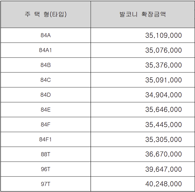 3. 송도 럭스 오션 SK뷰 분양가 / 확장비 / 평면도