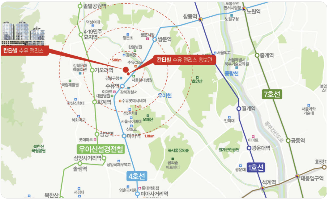 칸타빌 수유팰리스 청약일정, 분양가, 평면도, 분양정보, 모델하우스 출처 : 입주자 모집공고문 1. 칸타빌 수유팰리스 입지 - 공급위치 : 서울특별시 강북구 수유동 179-2외4필지 2. 칸타빌 수유팰