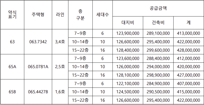 2) 65A : 4억 1200만 ~ 4억 2700만