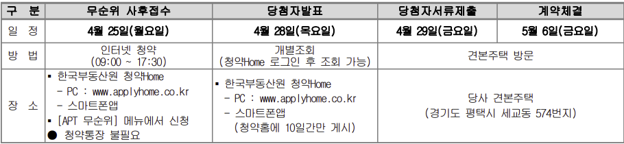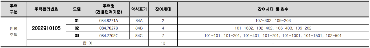 - 공급 규모 : 아파트 지하 2층, 지상 28층 9개동 총 812세대 정당계약 및 예비입주자 계약 이후 잔여물량 13세대