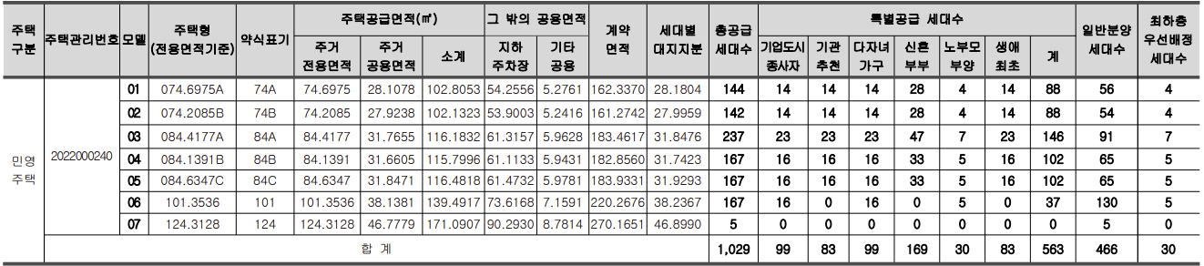 - 공급 규모 : 지하 4층, 지상 37층 8개동 총 1,169세대 (아파트 7개동 1,029세대 , 오피스텔 1개동 140호실 및 근린생활시설)