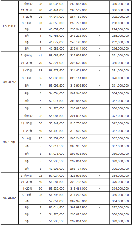5) 84C : 3억 4300만 ~ 3억 8400만